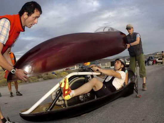 Sepeda ini berbentuk recumbent bicycle yang cara mengendarainya dengan berbaring, kaki selonjor menggenjot pedal dan tangan berada pada handlebar yang sejajar dengan dada atau leher pengemudi. Mirip seperti mengemudi mobil F1. Karena dibutuhkan aerodinamika yang baik maka sepeda tersebut ditutup dengan fairing berbahan ringan dan berbentuk pipih seperti badan ikan bahkan roda juga tertutup hanya meyisakan 1/4 bagian saja yang terlihat. Walaupun demikian, pengendara tetap bisa meilhat track karena terdapat bahan yang juga ringan namun bening sehingga layaknya kokpit jet tempur.